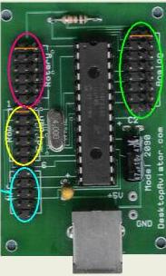 With all needed potentiometers wired, remove the board from the computer s USB Port and insert the 3-pin connectors to the board. NOTE: the 3x8 male connector pine located to the right side of the board support theanalog input only.