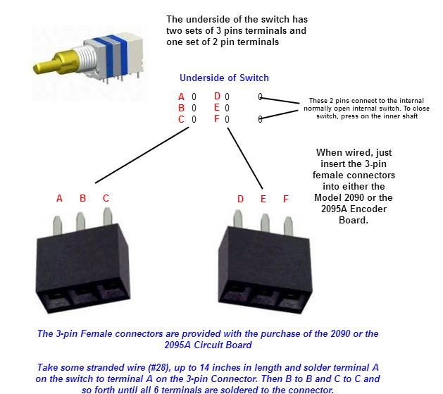 To connect the Rotary Switches to the 2090, all you need do it to solder 3 wires from the switch to one of the 3 pin female connectors provided with your purchase.