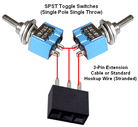 To make use of all the features the 2887 has to offer, you can take a handfull of SPST (on/off) switches and wire them to the supplied 3-pin Female Connectors Note: Two switches for each connector. For full operation, you need to make 6 Switch Assemblies as seen on the right.
